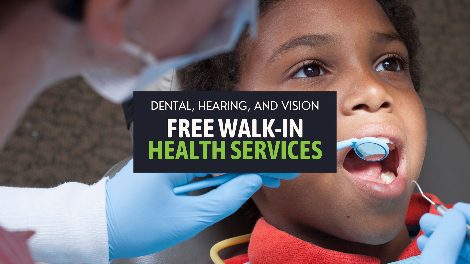 Get free dental, hearing, and vision care — no insurance required! People ages 2 and up can receive walk-in health services on a first come, first served basis.